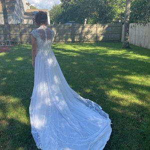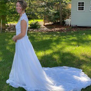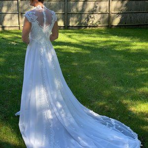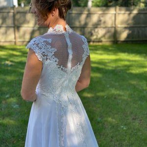 Vintage Eve of Milady Wedding Dress Size 10 Queen Anne Neck, Cap Sleeve, Perfect
