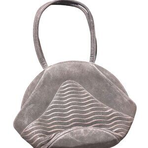 This vintage brown velvet evening bag features an elegant wave pattern design and a satin-lined interior, making it a refined accessory for formal occasions.