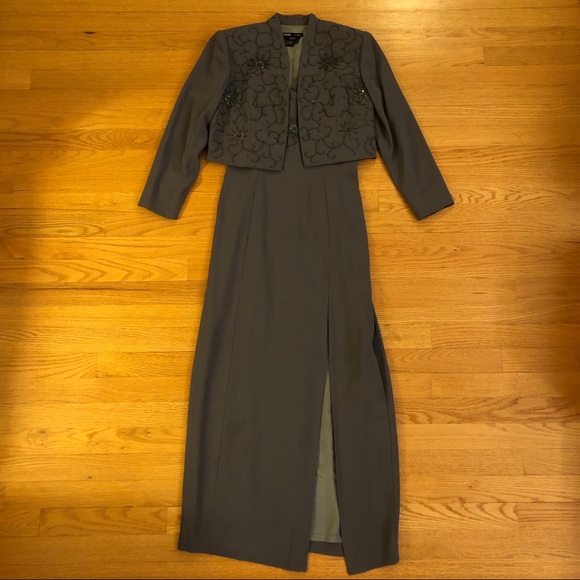 Vintage Rimini Slate Grey Beaded Evening Dress and Jacket