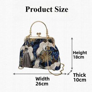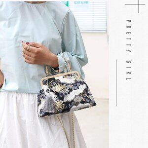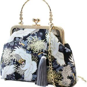 Elegant Vintage Handbag: This stunning evening bag features an embroidered Butterfly and Crane pattern, giving it a sophisticated and refined look. Made with high-quality satin, perfect for formal events or adding a touch of elegance to your daily outfits. The vintage floral embroidery adds unique charm, making it a timeless piece that never goes out of fashion. Compact and versatile, it can be styled as a clutch or worn as a crossbody, ideal for weddings, parties, or special occasions. Measuring approximately 9.45 x 6.3 x 2.36 inches, it’s spacious enough to hold your essentials without sacrificing style. The buckle closure keeps everything secure, and the lightweight design makes it easy to carry all night long. A beautiful and refined accessory for your wardrobe—whether dressing up or adding vintage glamour to everyday wear. Great for gifting or treating yourself! Ships quick from smoke-free, pet-free home. Reasonable offers welcome. Bundle to save!