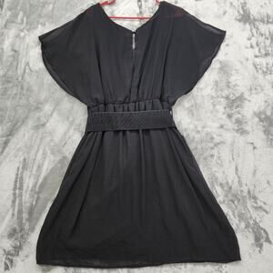 Vintage Evogues Dress Womens 3X Black Short Flutter Sleeve Belted Fit & Flare Stretch Jersey Elastic Waist Wide Stretch Elastic Belt Casual Preppy Office Party