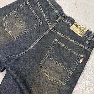 Vintage Evolution Blue Gradient Faded Baggy Wide Leg Denim Y2K Jeans 36 x 34