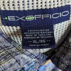 Vintage ExOfficio Fishing Shirt Mens XL Blue Tan Fish Plaid Lightweight Outdoors