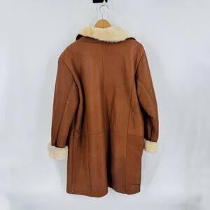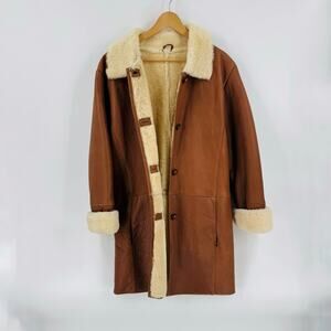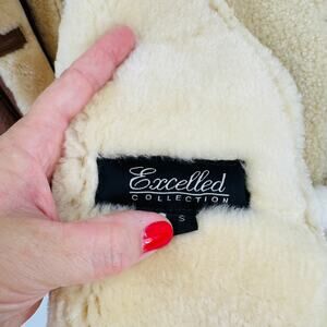Vintage Excelled Shearling Leather Coat Chestnut Sheepskin Button Up Size S