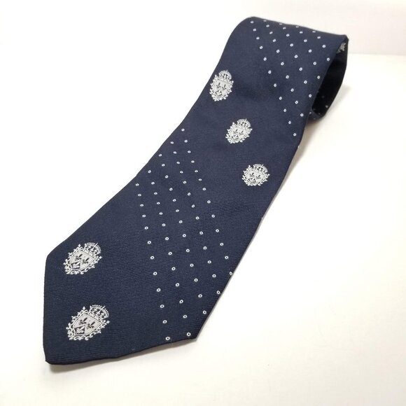 Vintage Excello Tiffany Collection crest embroidery tie navy 4.25" wide 55" long