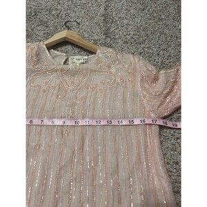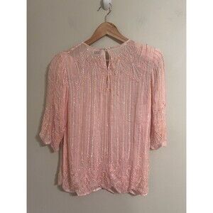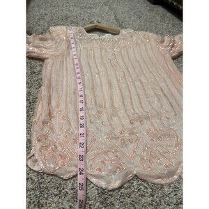 Vintage Exclusive Pale Pink Beads and Sequined Tunic 100% Silk Size Medium