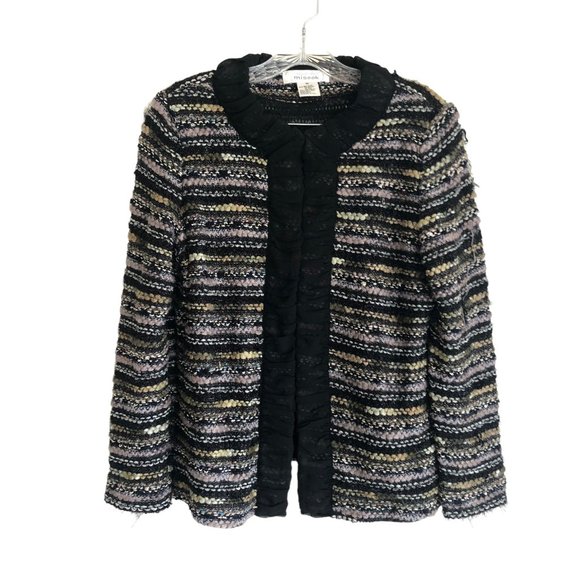 Vintage Exclusively Misook Women's Cardigan Sweater Size M Multi Fabric Shimmer