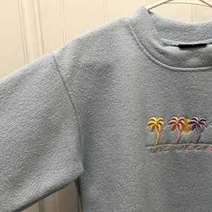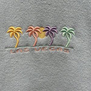 Vintage Exist Sports Line Terrycloth Top Las Vegas Embroidered Mock Neck Blue Sweater Tunic Thick Heavier Material...preowned good condition...approx 20" across chest and 24" length