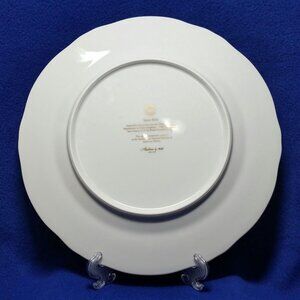 This plate is part of the large Exotic Birds Collection by Andrea by Sadek. This plate is the "B" version of the pattern. The description of the pattern is multicolor bird motifs, gold scroll trim. This pattern is retired. This collection was introduced in 2004.