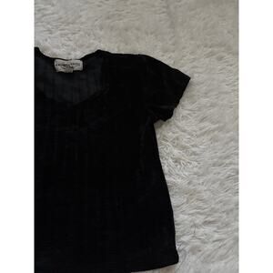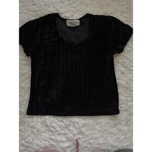 Vintage Explorations women's sz. L black velvet short sleeved top. Cute, fun