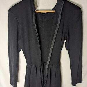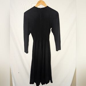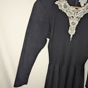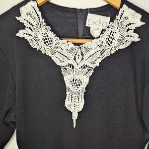 Vintage Expo Lace Trim Neckline Black Wool Blend Midi Dress Size 4