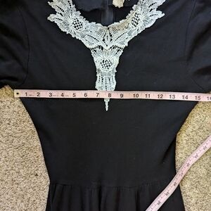 vintage black dress with lace embroidery along high neckline and back zipper closure, size 4