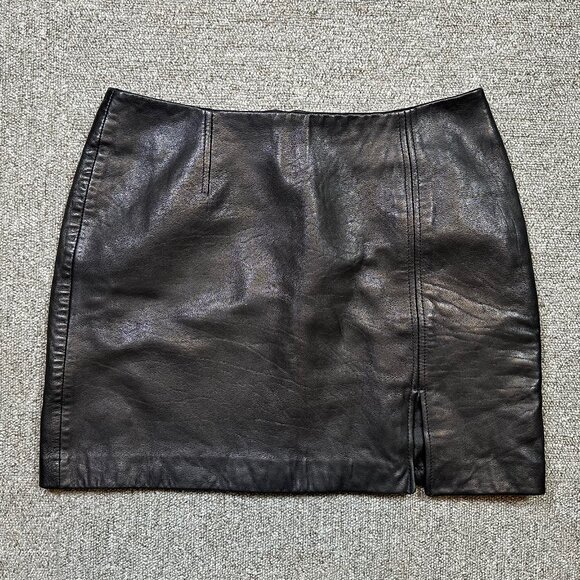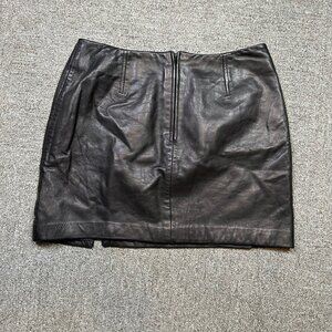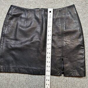 Vintage Express 100% Genuine Leather Black Slit Mini Skirt Size 9 / 10