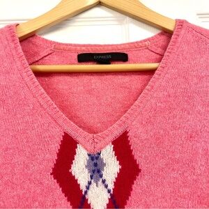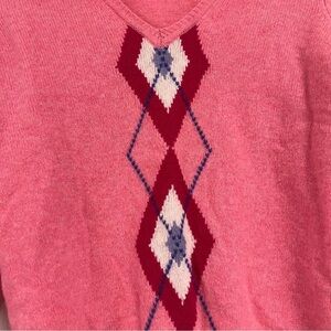 Vintage Express 100% Lamswool Sweater Women M baby Pink Y2K Academia Argyle