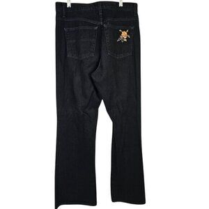 Vintage Express 90s Y2K Black Denim Bootcut Jeans 9/10 Floral Embroidered