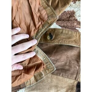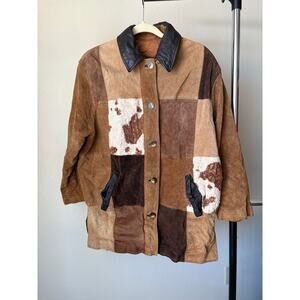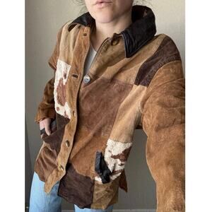 Vintage Express 90s / 80s patchwork genuine leather jacket. Amazing patchwork suede cowhide western boho pattern.