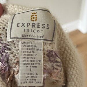 Vintage Express Angora Handknit Cardigan Silk Angora Size Large 90s Tradwife