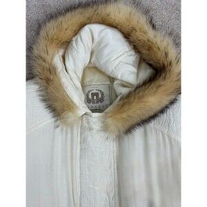 Vintage Express Badger Fur Trim Coat Womens Small Ivory Campagnie Internationale