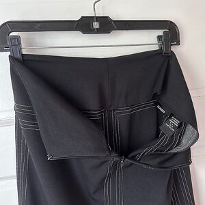 Vintage Express Black High Waist Bodycon Pencil Skirt Contrast Stitching Stretch