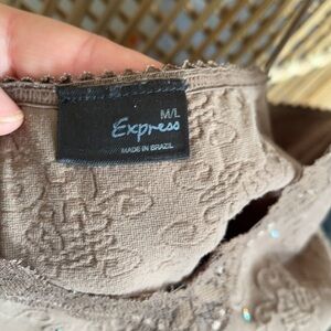 Vintage Express Brown Trendy Lace & Rhinestone Top