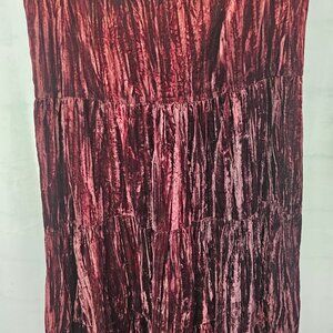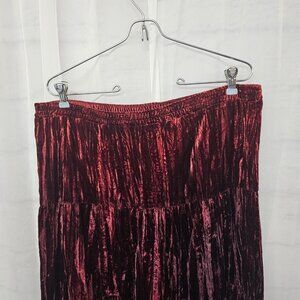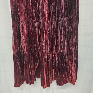 Vintage Express Burgundy Velour Maxi Skirt Boho Gypsy Tiered M