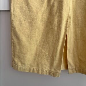 butter yellow, midi denim, vintage dress, cotton blend, soft denim, high-waisted, relaxed fit, summery, casual chic, retro style