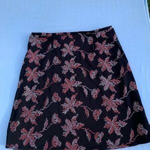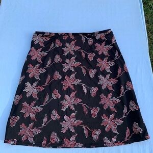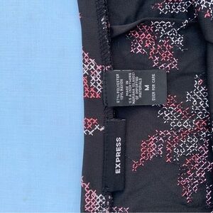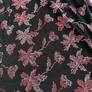 Express black & pink floral skirt size medium. Has a cross stitch pattern design that resembles florals. Preowned good condition, has a few loose threads. 87% polyester 13% rayon. 16 in waist, 20.5 in hem. Ships in 1-2 days 🖤