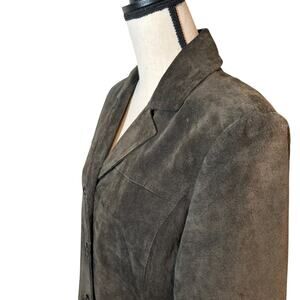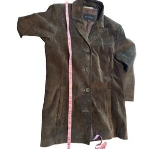 Vintage Express Dark Brown Longline Suede Jacket Medium 90s Y2K Minimal Classic