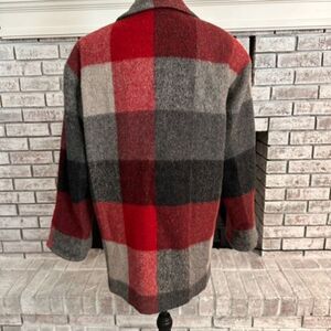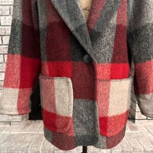 Vintage Express French Country Women's Wool Blend Plaid Coat Jacket Red Gray XS