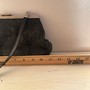 Vintage Express Genuine Leather Purse Cutout Floral Detail Thin Strap Black