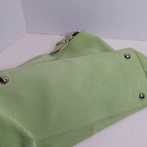 Has some small dirt stain shown in 3-4th pictures. Clean inside. Please scroll picture for more details. Vintage Express Large Tote Light Green Suede Shoulder Bag. Pet and smoke free home.