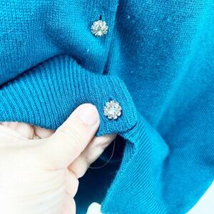 Vintage Express Medium Womens. Teal Cashmere Silk Blend Button-up Cardigan Sweater Career Work Professionl Rhinestone Buttons Blue Knit