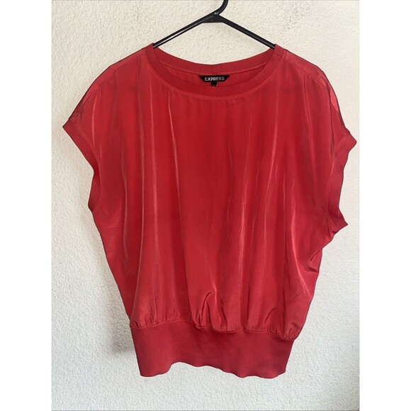 Express sexy red short sleeve loose baggy blouse shirt top with elastic waist to give it a tummy control and baggy look