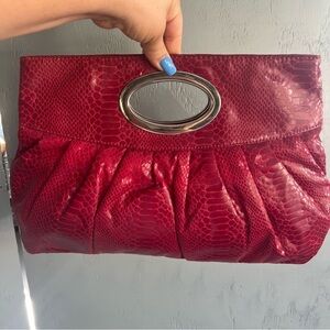 Vintage Express Red Faux Leather Clutch Snake Skin Snap Handle Bag