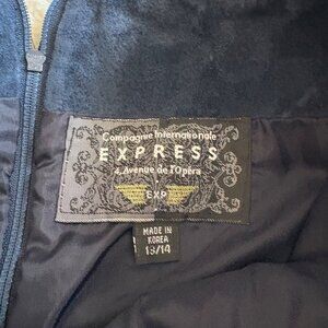 Step into 90s chic with this vintage Express suede mini skirt, crafted under the Compagnie Internationale d’Express label. Made in Korea, this skirt features soft genuine suede in a rich navy hue with a sleek, high-waisted silhouette.