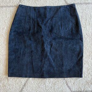 Vintage Express Suede Mini Skirt 80s/90s Navy Blue High-Waisted Pencil Style