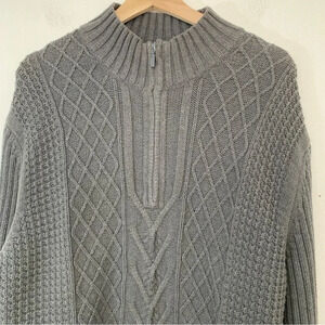 Vintage Express Sweater Men Large Cable Knit Gray Long Sleeve 1/4 Zip Warm Ski