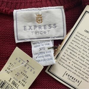 Vintage Express Sweater Tricot Burnt Red Cotton Knit Textured Scoop Neck XS NEW