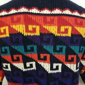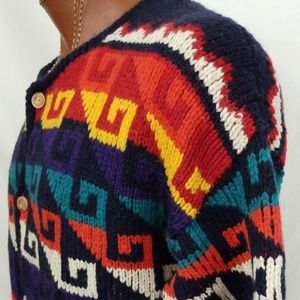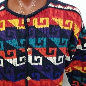 Vintage Express Tricot Bolivia Lambs Wool HandKnitted Button Down Cardigan Sweater M/L One Size Fits All