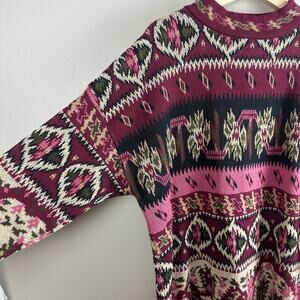 Vintage Express Tricot Fair Isle Nordic Oversized Tunic Mock Neck Sweater M
