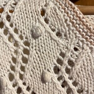 Beautiful handknit chunky sweater from Express. Very Clueless look! Gorgeous cream color with tan accents. Perfect for Fall I will be having surgery and going on vacation mode as of 12/5. Get your holiday items now to avoid missing out on some quality vintage items!