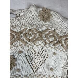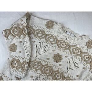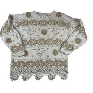 Vintage Express Tricot Sweater Womens Large Ivory Cream Long Sleeve Handknitted