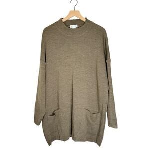 Vintage Express Tricot Wool Blend Tunic Brown Pockets size Large Sweater baggy