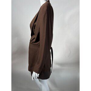 Vintage Express Womens Brown Rayon Blazer Jacket Size 7/8 With Belted Waist & Bu