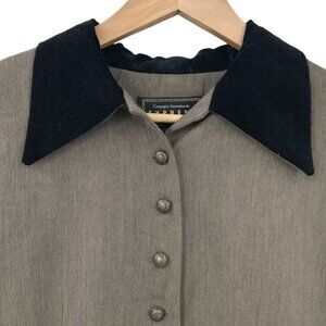 Vintage Express Wool Blend Velvet Tunic Blazer Size 9/10 Brown Black 90s Pockets