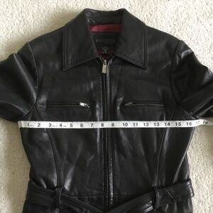 Buttery soft leather with slight distressing in some areas, and around cuffs, but still a great look. All zippers work great.