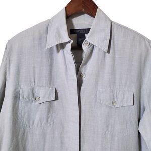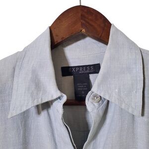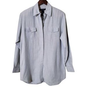 Vintage Express World Brand Linen Shirt Size S Blue Lagenlook Oversized Womens