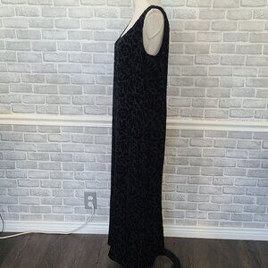 Vintage Express Y2K 90s Black Velvet Floral Burnout Shift Dress Silk Whimsygoth
