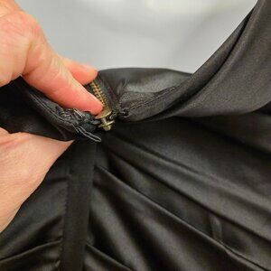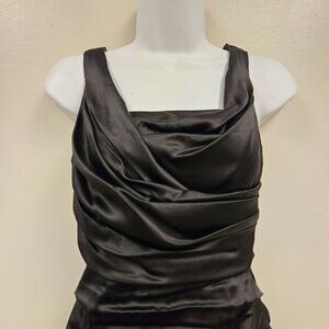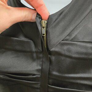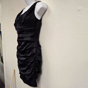 Vintage Express Y2K Women's sz 2 Black Ruched Bodycon Silk Cocktail Dress Sleeveless With Back Zipper Closure