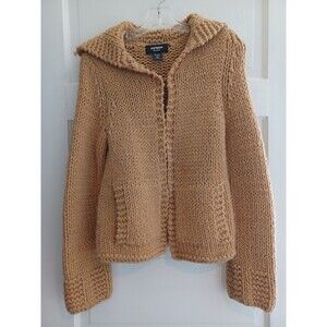 Vintage Express handknit chunky cardigan womens XS mustard woolblend retro boho